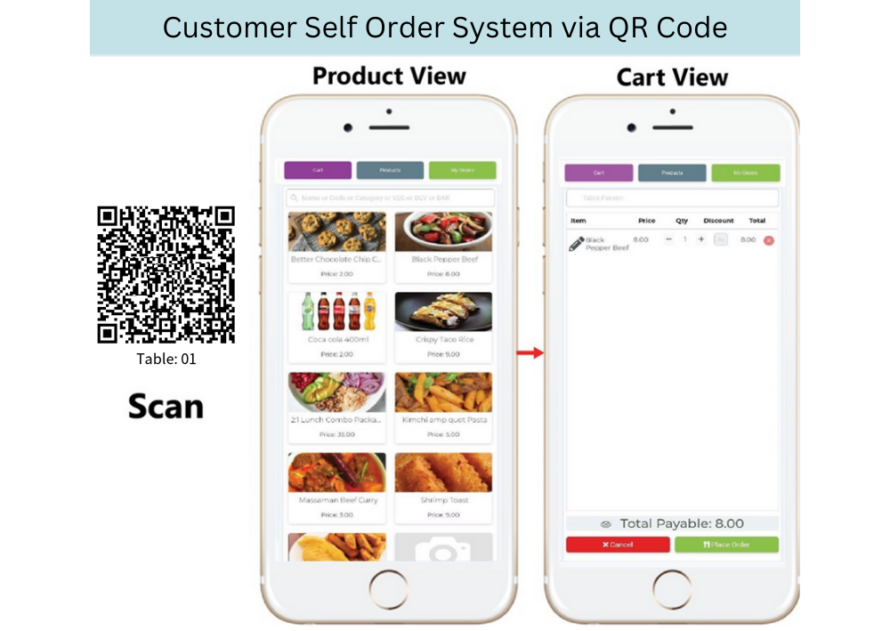 - Customer Self Order System via QR Code